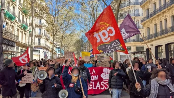 Il y a eu une très forte répression qui s’est déchargée sur les lycéen·nes avec les blocages. Des CRS venaient systématiquement, il y a eu des élèves mineurs qui ont été arrêtés chez eux sans que les parents soient au courant. Tout ça a permis aussi de politiser les profs face aux récits nationalistes, face aux classes dirigeants qui disent qu’il faut armer la France contre les attaques extérieures et qui, en même temps, sont en train de s’armer pour mater les mobilisations contre la guerre. Je pense que c’est ce lien avec les lycéen·ne·s et la force qu’iels ont eu qui donnent le caractère un peu élevé de la mobilisation à Marseille aujourd’hui, et que c’est très important de continuer à le renforcer.